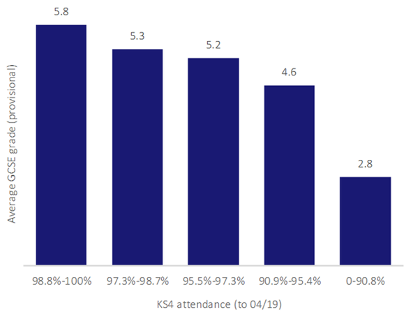 94.5%, the national average attendance rate in 2019, may sound high, but this translates to 50 lessons missed. The disruption to a student's learning that such absence has the potential to have is significant, as was recognised as far back as 1869: 'To profit by school exercises, scholars must be present. The loss of a few weeks, or even days sometimes, when a class is learning principles essential to its future course, will greatly impair, if not entirely interrupt, the progress of a pupil' (Tash, T (1869), 'School Attendance’, The Maine Journal of Education, Vol.3, No.11, pp402-406).