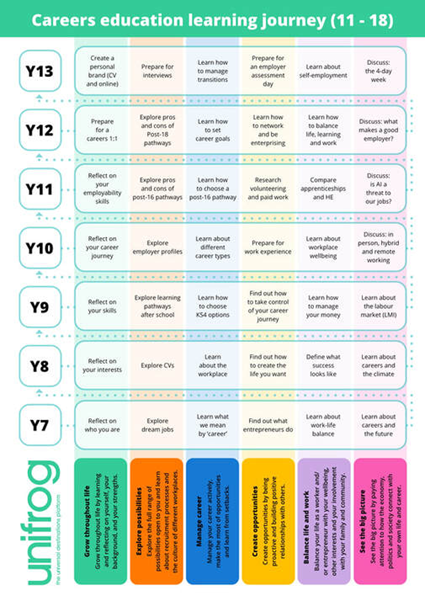 Unifrog is available to all students from Year 7 to Year 13, as well as staff and parents. It supports every stage of the journey—from early career exploration to final applications.